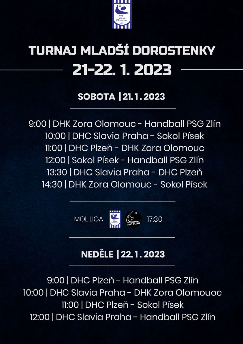 neděle 10 h s DHK Zora Olomouc (19:17) a ve 12 h s Handball PSG Zlín ( 23:12).