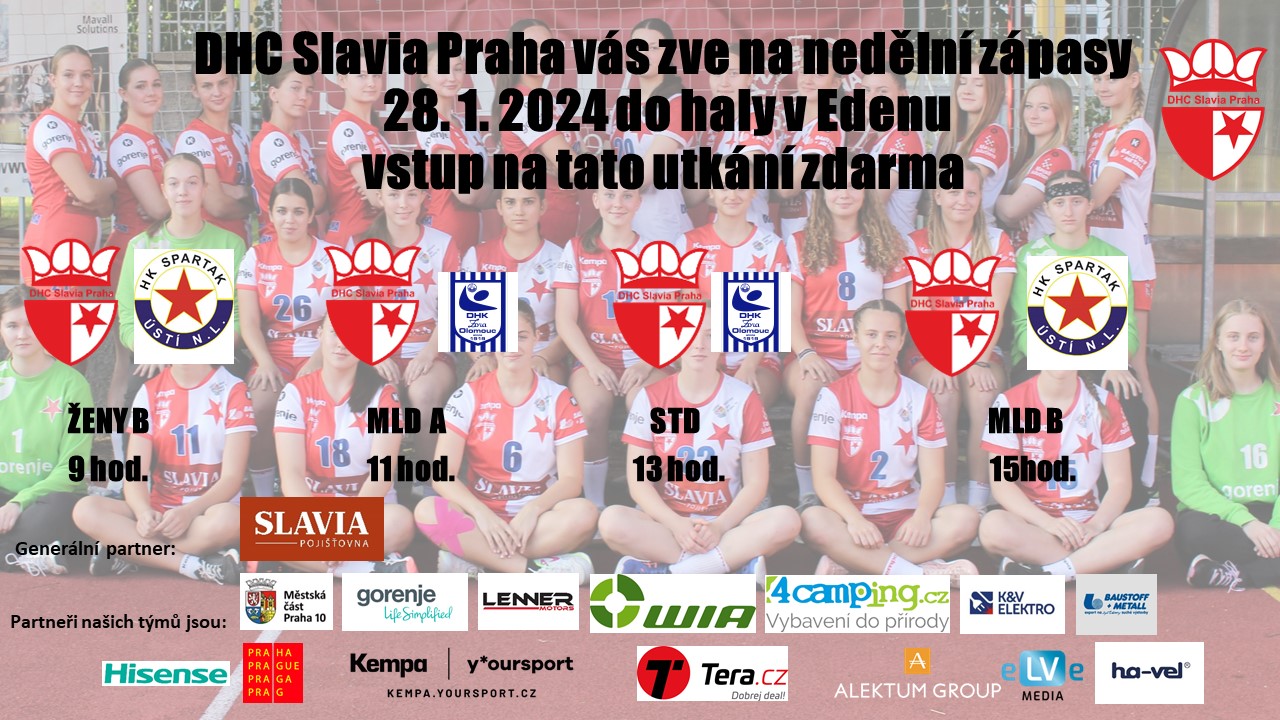 od 9 h utkání B týmu žen s Ústím - výhra Slavie 37:23 a Slavia je nadále na 1. místě tabulky,