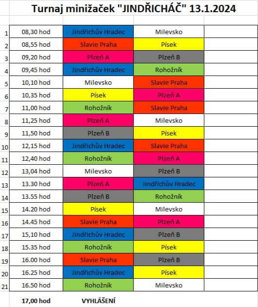 MINI na turnaji v Jindřichově Hradci 10. 1. 2024 13.1. mini v J. Hradci MINI na turnaji v Jindřichově HradciNaši nejmenší budou hrát o víkendu v J. Hradci.Utkají ses :Házená Sokol Písek DHC Plzeň Handball club Milevsko Športový klub hádzanej RohožníkHázená Jindřichův Hradec - oficiální fanpage Házená Jindřichův Hradec DHC Plzeň AHandball club Milevsko