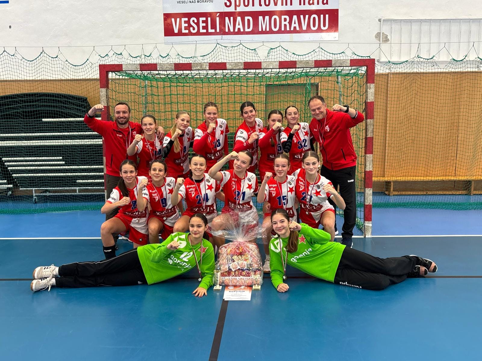 Do Veselí jsme jeli převážně s ročníkem 2011 sbírat zkušenosti. V základní skupině jsme se potkali s HC Zlín (16:13), SHK Rohožník/Malacky (6:14), HC Milevsko (12:11), Iuventa Michalovce (16:12) a Duslo Šala (9:9) skončili druzí ve skupině a postoupili do bojů o medaile. Nedělní finálový den byl po dvou hracích dnech velmi náročný a po velmi těsné prohře s DHC Plzeň (11:12) a remízou s ŠKP Bratislava (9:9) jsme vybojovali velmi cenné 3. místo v turnaji. Holky ukázaly velkou bojovnost a nasazení. Naše Veronika Vyhnanovská byla oceněna jako nejlepší brankářka celého turnaje. Třetího místa si velmi ceníme, protože jsme si ověřili, že umíme hrát i proti starším a zkušenějším mužstvům velmi vyrovnané zápasy.
